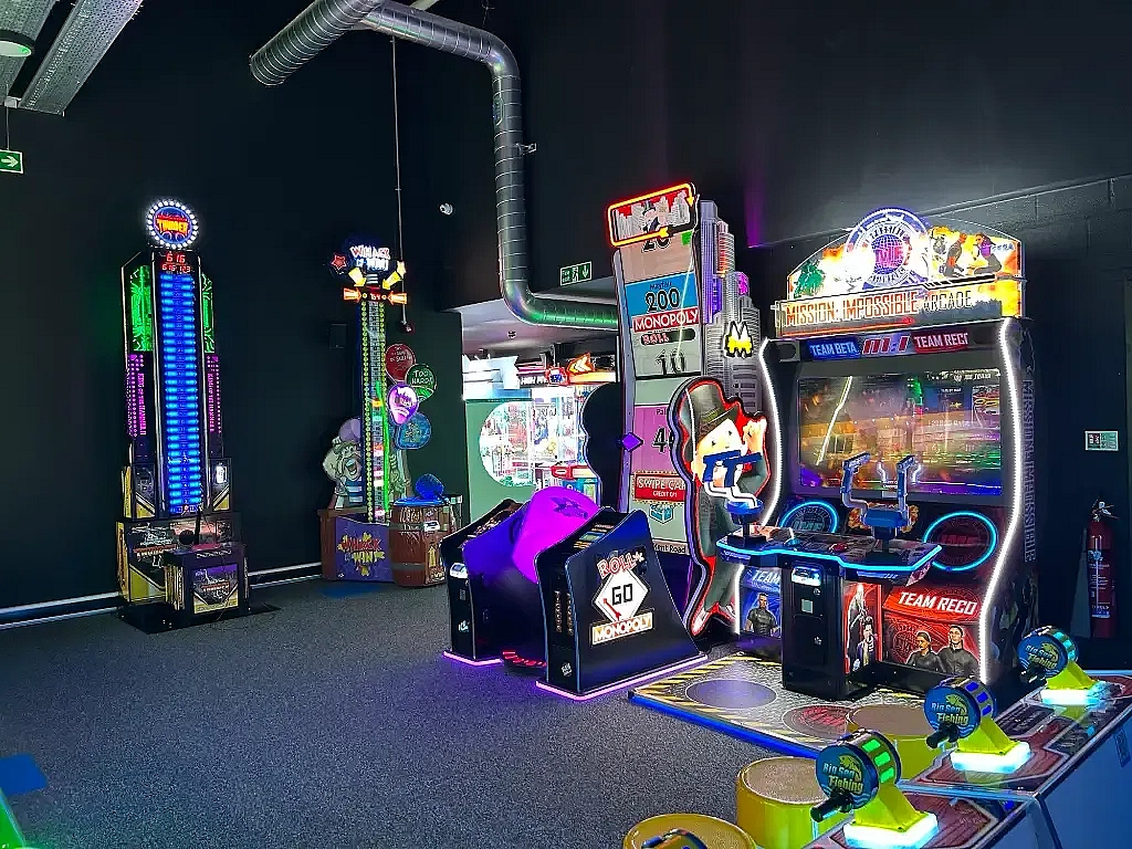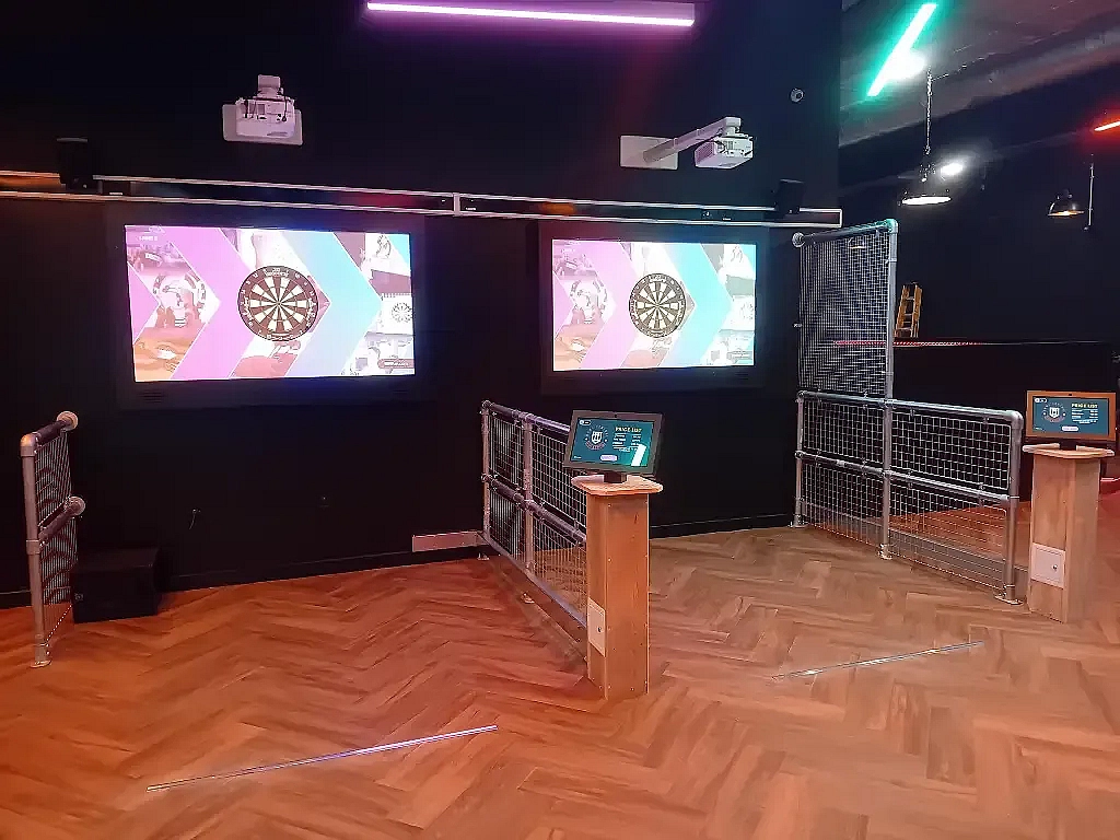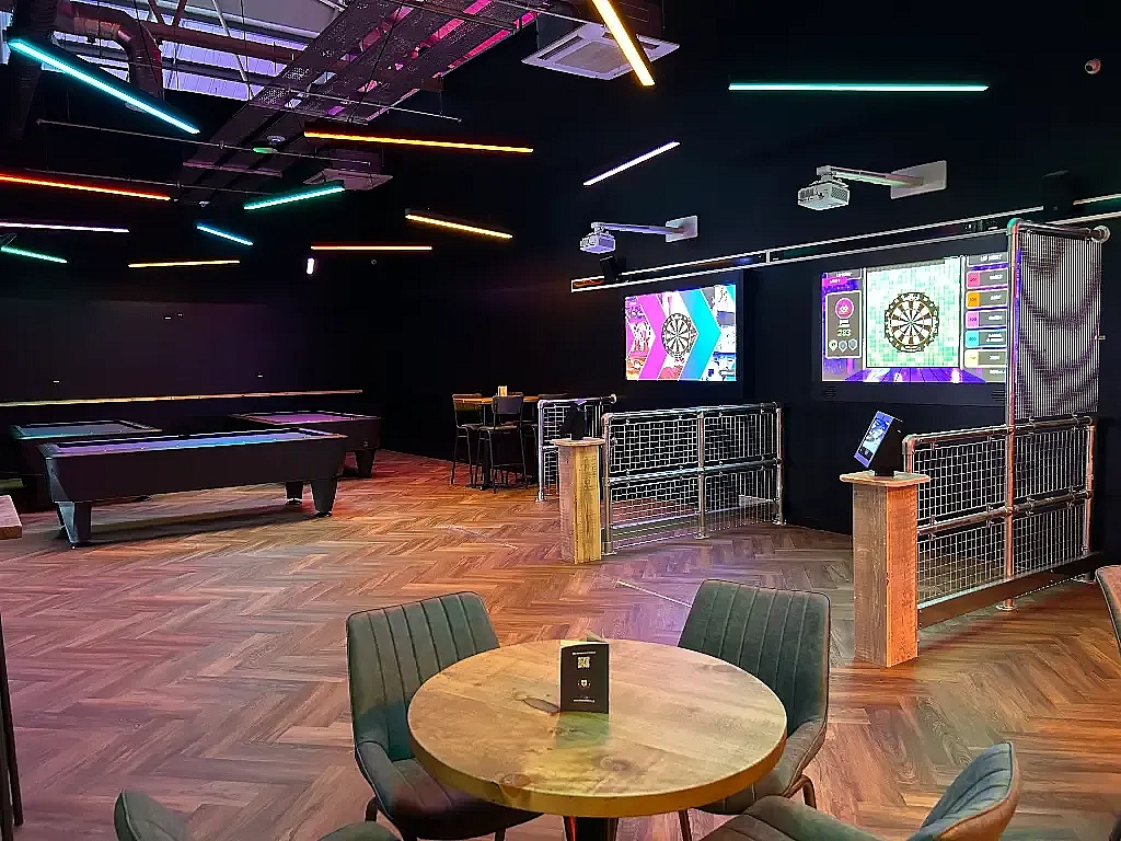 Interactive darts and an arcade zone